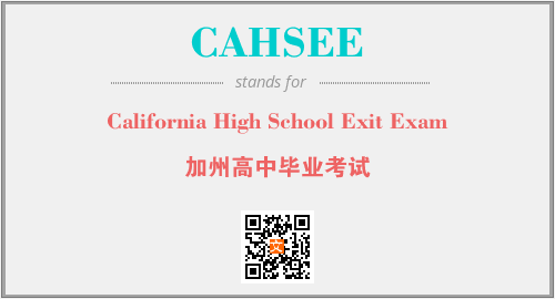 英文缩略词“CAHSEE”经常作为“California High School Exit Exam”的英文缩写来使用,中文表示:“加州高中毕业考试”。本文将详细介绍英文缩写词CAHSEE所代表英文单词,其对应的中文拼音、详细解释以及在英语中的流行度。此外,还有关于缩略词CAHSEE的分类、应用领域及相关应用示例等。