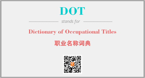 英文缩略词“DOT”经常作为“Dictionary of Occupational Titles”的英文缩写来使用,中文表示:“职业名称词典”。本文将详细介绍英文缩写词DOT所代表英文单词,其对应的中文拼音、详细解释以及在英语中的流行度。此外,还有关于缩略词DOT的分类、应用领域及相关应用示例等。