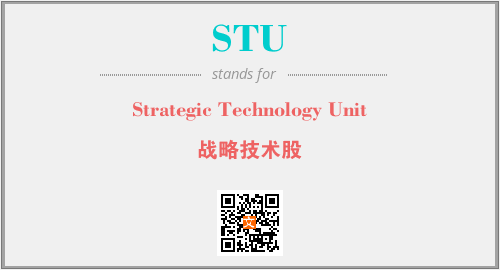 上述内容是“Strategic Technology Unit”作为“STU”的缩写,解释为“战略技术股”时的信息,以及英文缩略词STU所代表的英文单词,其对应的中文拼音、详细解释以及在英文中的流行度和相关分类、应用领域及应用示例等。
