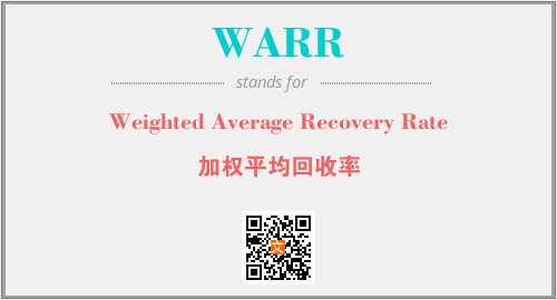 上述内容是“Weighted Average Recovery Rate”作为“WARR”的缩写,解释为“加权平均回收率”时的信息,以及英文缩略词WARR所代表的英文单词,其对应的中文拼音、详细解释以及在英文中的流行度和相关分类、应用领域及应用示例等。