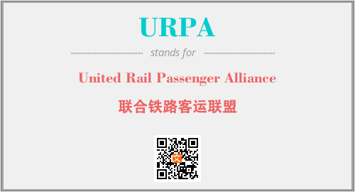 英文缩略词“URPA”经常作为“United Rail Passenger Alliance”的英文缩写来使用,中文表示:“联合铁路客运联盟”。本文将详细介绍英文缩写词URPA所代表英文单词,其对应的中文拼音、详细解释以及在英语中的流行度。此外,还有关于缩略词URPA的分类、应用领域及相关应用示例等。