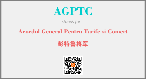 英文缩略词“AGPTC”经常作为“Acordul General Pentru Tarife si Comert”的英文缩写来使用,中文表示:“彭特鲁将军”。本文将详细介绍英文缩写词AGPTC所代表英文单词,其对应的中文拼音、详细解释以及在英语中的流行度。此外,还有关于缩略词AGPTC的分类、应用领域及相关应用示例等。