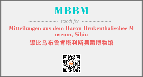 英文缩略词“MBBM”经常作为“Mitteilungen aus dem Baron Brukenthalisches Museum, Sibiu”的英文缩写来使用,中文表示:“锡比乌布鲁肯塔利斯男爵博物馆”。本文将详细介绍英文缩写词MBBM所代表英文单词,其对应的中文拼音、详细解释以及在英语中的流行度。此外,还有关于缩略词MBBM的分类、应用领域及相关应用示例等。