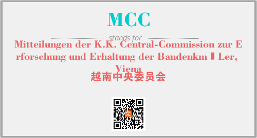 上述内容是“Mitteilungen der K.K. Central-Commission zur Erforschung und Erhaltung der BandenkmäLer, Viena”作为“MCC”的缩写,解释为“越南中央委员会”时的信息,以及英文缩略词MCC所代表的英文单词,其对应的中文拼音、详细解释以及在英文中的流行度和相关分类、应用领域及应用示例等。