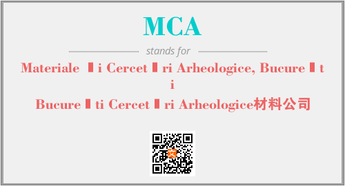 上述内容是“Materiale şi Cercetări Arheologice, Bucureşti”作为“MCA”的缩写,解释为“Bucureşti Cercetări Arheologice材料公司”时的信息,以及英文缩略词MCA所代表的英文单词,其对应的中文拼音、详细解释以及在英文中的流行度和相关分类、应用领域及应用示例等。