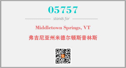 上述内容是“Middletown Springs, VT”作为“05757”的缩写,解释为“弗吉尼亚州米德尔顿斯普林斯”时的信息,以及英文缩略词05757所代表的英文单词,其对应的中文拼音、详细解释以及在英文中的流行度和相关分类、应用领域及应用示例等。