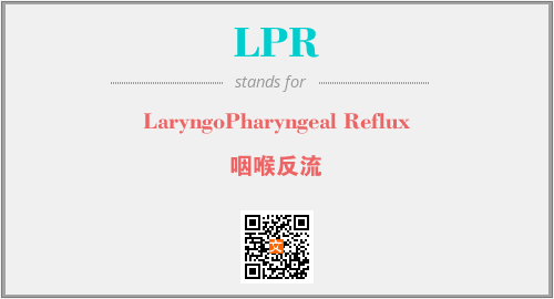 上述内容是“LaryngoPharyngeal Reflux”作为“LPR”的缩写,解释为“咽喉反流”时的信息,以及英文缩略词LPR所代表的英文单词,其对应的中文拼音、详细解释以及在英文中的流行度和相关分类、应用领域及应用示例等。