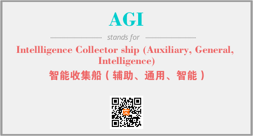 上述内容是“Intellligence Collector ship (Auxiliary, General, Intelligence)”作为“AGI”的缩写,解释为“智能收集船(辅助、通用、智能)”时的信息,以及英文缩略词AGI所代表的英文单词,其对应的中文拼音、详细解释以及在英文中的流行度和相关分类、应用领域及应用示例等。