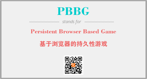 英文缩略词“PBBG”经常作为“Persistent Browser Based Game”的英文缩写来使用,中文表示:“基于浏览器的持久性游戏”。本文将详细介绍英文缩写词PBBG所代表英文单词,其对应的中文拼音、详细解释以及在英语中的流行度。此外,还有关于缩略词PBBG的分类、应用领域及相关应用示例等。
