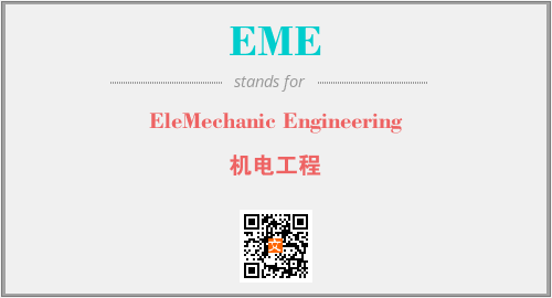 上述内容是“EleMechanic Engineering”作为“EME”的缩写,解释为“机电工程”时的信息,以及英文缩略词EME所代表的英文单词,其对应的中文拼音、详细解释以及在英文中的流行度和相关分类、应用领域及应用示例等。