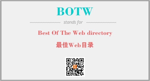 上述内容是“Best Of The Web directory”作为“BOTW”的缩写,解释为“最佳Web目录”时的信息,以及英文缩略词BOTW所代表的英文单词,其对应的中文拼音、详细解释以及在英文中的流行度和相关分类、应用领域及应用示例等。