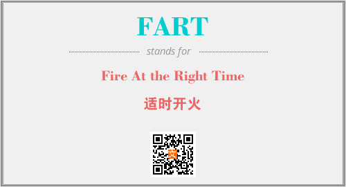 上述内容是“Fire At the Right Time”作为“FART”的缩写,解释为“适时开火”时的信息,以及英文缩略词FART所代表的英文单词,其对应的中文拼音、详细解释以及在英文中的流行度和相关分类、应用领域及应用示例等。