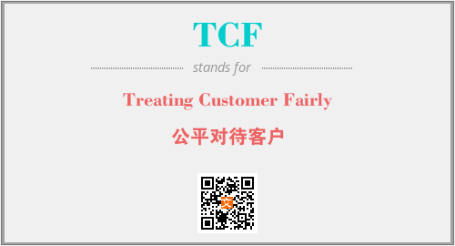 上述内容是“Treating Customer Fairly”作为“TCF”的缩写,解释为“公平对待客户”时的信息,以及英文缩略词TCF所代表的英文单词,其对应的中文拼音、详细解释以及在英文中的流行度和相关分类、应用领域及应用示例等。