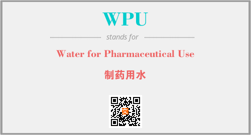 英文缩略词“WPU”经常作为“Water for Pharmaceutical Use”的英文缩写来使用,中文表示:“制药用水”。本文将详细介绍英文缩写词WPU所代表英文单词,其对应的中文拼音、详细解释以及在英语中的流行度。此外,还有关于缩略词WPU的分类、应用领域及相关应用示例等。