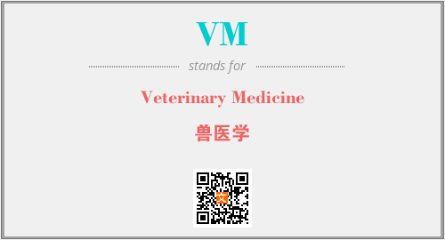 上述内容是“Veterinary Medicine”作为“VM”的缩写,解释为“兽医学”时的信息,以及英文缩略词VM所代表的英文单词,其对应的中文拼音、详细解释以及在英文中的流行度和相关分类、应用领域及应用示例等。