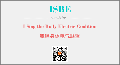 上述内容是“I Sing the Body Electric Coalition”作为“ISBE”的缩写,解释为“我唱身体电气联盟”时的信息,以及英文缩略词ISBE所代表的英文单词,其对应的中文拼音、详细解释以及在英文中的流行度和相关分类、应用领域及应用示例等。