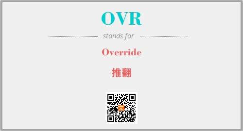 英文缩略词“OVR”经常作为“Override”的英文缩写来使用,中文表示:“推翻”。本文将详细介绍英文缩写词OVR所代表英文单词,其对应的中文拼音、详细解释以及在英语中的流行度。此外,还有关于缩略词OVR的分类、应用领域及相关应用示例等。