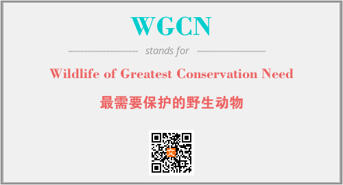 上述内容是“Wildlife of Greatest Conservation Need”作为“WGCN”的缩写,解释为“最需要保护的野生动物”时的信息,以及英文缩略词WGCN所代表的英文单词,其对应的中文拼音、详细解释以及在英文中的流行度和相关分类、应用领域及应用示例等。