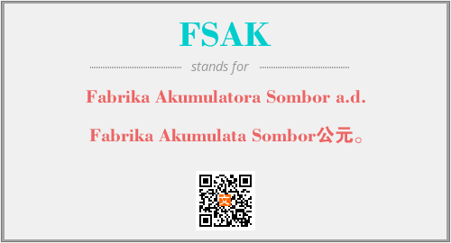 上述内容是“Fabrika Akumulatora Sombor a.d.”作为“FSAK”的缩写,解释为“Fabrika Akumulata Sombor公元。”时的信息,以及英文缩略词FSAK所代表的英文单词,其对应的中文拼音、详细解释以及在英文中的流行度和相关分类、应用领域及应用示例等。