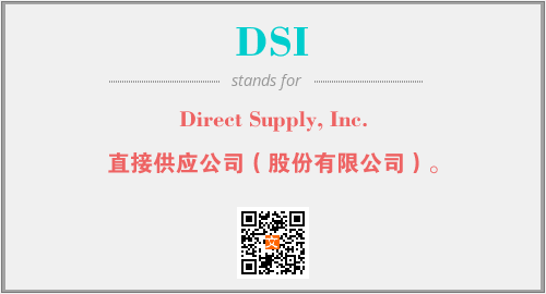 上述内容是“Direct Supply, Inc.”作为“DSI”的缩写,解释为“直接供应公司(股份有限公司)。”时的信息,以及英文缩略词DSI所代表的英文单词,其对应的中文拼音、详细解释以及在英文中的流行度和相关分类、应用领域及应用示例等。