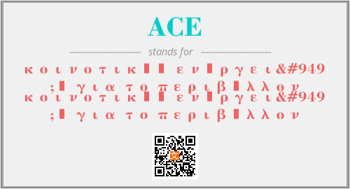 上述内容是“κοινοτικές ενέργειες για το περιβάλλον”作为“ACE”的缩写,解释为“κοινοτικές ενέργειες για το περιβάλλον”时的信息,以及英文缩略词ACE所代表的英文单词,其对应的中文拼音、详细解释以及在英文中的流行度和相关分类、应用领域及应用示例等。