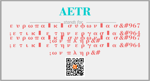 上述内容是“ευρωπαϊκή συφωνία σχετική ε την εργασία των πληρ”作为“AETR”的缩写,解释为“ευρωπαϊκή συφωνία σχετική ε την εργασία των πληρ”时的信息,以及英文缩略词AETR所代表的英文单词,其对应的中文拼音、详细解释以及在英文中的流行度和相关分类、应用领域及应用示例等。