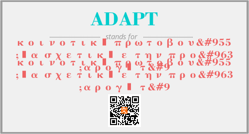 以上为κοινοτική πρωτοβουλία σχετική ε την προσαρογή τ 英文缩略词ADAPT的中文解释,以及该英文缩写在英语的流行度、分类和应用领域方面的信息。