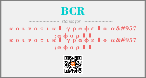英文缩略词“BCR”经常作为“κοινοτικό γραφείο αναφοράς”的英文缩写来使用,中文表示:“κοινοτικό γραφείο αναφοράς”。本文将详细介绍英文缩写词BCR所代表英文单词,其对应的中文拼音、详细解释以及在英语中的流行度。此外,还有关于缩略词BCR的分类、应用领域及相关应用示例等。