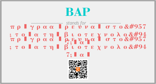 以上为πρόγραα έρευνας στον τοέα της βιοτεχνολογίας英文缩略词BAP的中文解释,以及该英文缩写在英语的流行度、分类和应用领域方面的信息。
