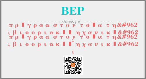 上述内容是“πρόγραα στον τοέα της βιοοριακής ηχανικής”作为“BEP”的缩写,解释为“πρόγραα στον τοέα της βιοοριακής ηχανικής”时的信息,以及英文缩略词BEP所代表的英文单词,其对应的中文拼音、详细解释以及在英文中的流行度和相关分类、应用领域及应用示例等。