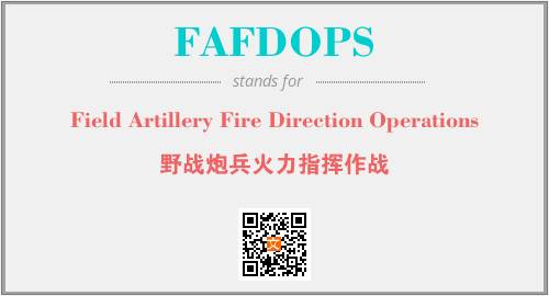 以上为Field Artillery Fire Direction Operations英文缩略词FAFDOPS的中文解释,以及该英文缩写在英语的流行度、分类和应用领域方面的信息。
