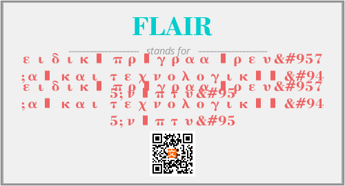上述内容是“ειδικό πρόγραα έρευνας και τεχνολογικής ανάπτυ_”作为“FLAIR”的缩写,解释为“ειδικό πρόγραα έρευνας και τεχνολογικής ανάπτυ_”时的信息,以及英文缩略词FLAIR所代表的英文单词,其对应的中文拼音、详细解释以及在英文中的流行度和相关分类、应用领域及应用示例等。
