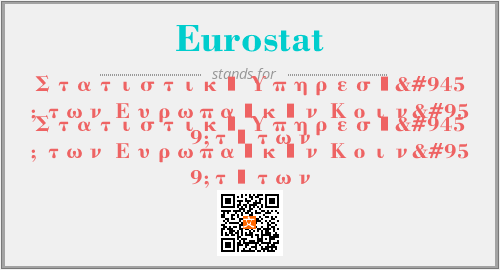 英文缩略词“Eurostat”经常作为“Στατιστική Υπηρεσία των Ευρωπαϊκών Κοινοτήτων”的英文缩写来使用,中文表示:“Στατιστική Υπηρεσία των Ευρωπαϊκών Κοινοτήτων”。本文将详细介绍英文缩写词Eurostat所代表英文单词,其对应的中文拼音、详细解释以及在英语中的流行度。此外,还有关于缩略词Eurostat的分类、应用领域及相关应用示例等。