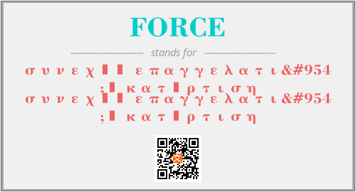 上述内容是“συνεχής επαγγελατική κατάρτιση”作为“FORCE”的缩写,解释为“συνεχής επαγγελατική κατάρτιση”时的信息,以及英文缩略词FORCE所代表的英文单词,其对应的中文拼音、详细解释以及在英文中的流行度和相关分类、应用领域及应用示例等。