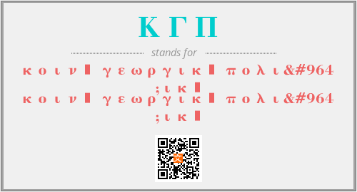上述内容是“κοινή γεωργική πολιτική”作为“ΚΓΠ”的缩写,解释为“κοινή γεωργική πολιτική”时的信息,以及英文缩略词ΚΓΠ所代表的英文单词,其对应的中文拼音、详细解释以及在英文中的流行度和相关分类、应用领域及应用示例等。
