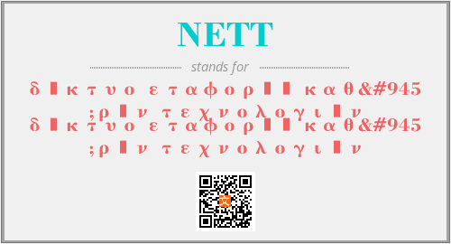 以上为δίκτυο εταφοράς καθαρών τεχνολογιών英文缩略词NETT的中文解释,以及该英文缩写在英语的流行度、分类和应用领域方面的信息。