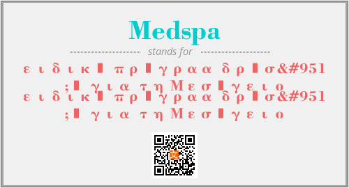 英文缩略词“Medspa”经常作为“ειδικό πρόγραα δράσης για τη Μεσόγειο”的英文缩写来使用,中文表示:“ειδικό πρόγραα δράσης για τη Μεσόγειο”。本文将详细介绍英文缩写词Medspa所代表英文单词,其对应的中文拼音、详细解释以及在英语中的流行度。此外,还有关于缩略词Medspa的分类、应用领域及相关应用示例等。