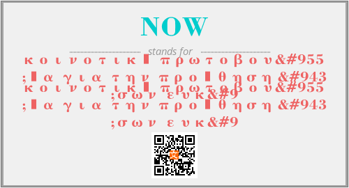 英文缩略词“NOW”经常作为“κοινοτική πρωτοβουλία για την προώθηση ίσων ευκ ”的英文缩写来使用,中文表示:“κοινοτική πρωτοβουλία για την προώθηση ίσων ευκ ”。本文将详细介绍英文缩写词NOW所代表英文单词,其对应的中文拼音、详细解释以及在英语中的流行度。此外,还有关于缩略词NOW的分类、应用领域及相关应用示例等。
