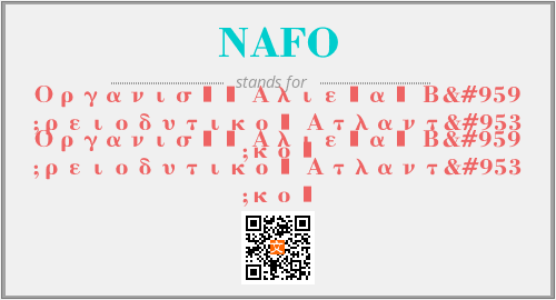 上述内容是“Οργανισός Αλιείας Βορειοδυτικού Ατλαντικού”作为“NAFO”的缩写,解释为“Οργανισός Αλιείας Βορειοδυτικού Ατλαντικού”时的信息,以及英文缩略词NAFO所代表的英文单词,其对应的中文拼音、详细解释以及在英文中的流行度和相关分类、应用领域及应用示例等。