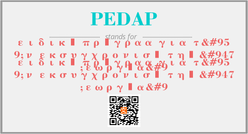 英文缩略词“PEDAP”经常作为“ειδικό πρόγραα για τον εκσυγχρονισό της γεωργία ”的英文缩写来使用,中文表示:“ειδικό πρόγραα για τον εκσυγχρονισό της γεωργία ”。本文将详细介绍英文缩写词PEDAP所代表英文单词,其对应的中文拼音、详细解释以及在英语中的流行度。此外,还有关于缩略词PEDAP的分类、应用领域及相关应用示例等。