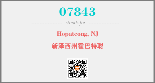 上述内容是“Hopatcong, NJ”作为“07843”的缩写,解释为“新泽西州霍巴特聪”时的信息,以及英文缩略词07843所代表的英文单词,其对应的中文拼音、详细解释以及在英文中的流行度和相关分类、应用领域及应用示例等。