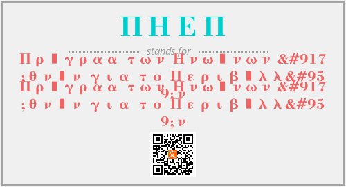 上述内容是“Πρόγραα των Ηνωένων Εθνών για το Περιβάλλον”作为“ΠΗΕΠ”的缩写,解释为“Πρόγραα των Ηνωένων Εθνών για το Περιβάλλον”时的信息,以及英文缩略词ΠΗΕΠ所代表的英文单词,其对应的中文拼音、详细解释以及在英文中的流行度和相关分类、应用领域及应用示例等。