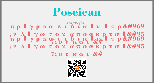 上述内容是“πρόγραα ειδικών έτρων λόγω του αποακρυσένου και ”作为“Poseican”的缩写,解释为“πρόγραα ειδικών έτρων λόγω του αποακρυσένου και ”时的信息,以及英文缩略词Poseican所代表的英文单词,其对应的中文拼音、详细解释以及在英文中的流行度和相关分类、应用领域及应用示例等。