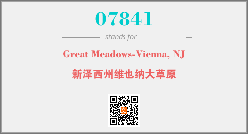 上述内容是“Great Meadows-Vienna, NJ”作为“07841”的缩写,解释为“新泽西州维也纳大草原”时的信息,以及英文缩略词07841所代表的英文单词,其对应的中文拼音、详细解释以及在英文中的流行度和相关分类、应用领域及应用示例等。