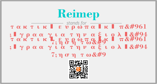 以上为τακτικό ευρωπαϊκό πρόγραα για την αξιολόγηση τω 英文缩略词Reimep的中文解释,以及该英文缩写在英语的流行度、分类和应用领域方面的信息。