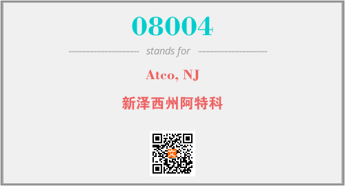 上述内容是“Atco, NJ”作为“08004”的缩写,解释为“新泽西州阿特科”时的信息,以及英文缩略词08004所代表的英文单词,其对应的中文拼音、详细解释以及在英文中的流行度和相关分类、应用领域及应用示例等。