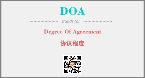 上述内容是“Degree Of Agreement”作为“DOA”的缩写,解释为“协议程度”时的信息,以及英文缩略词DOA所代表的英文单词,其对应的中文拼音、详细解释以及在英文中的流行度和相关分类、应用领域及应用示例等。
