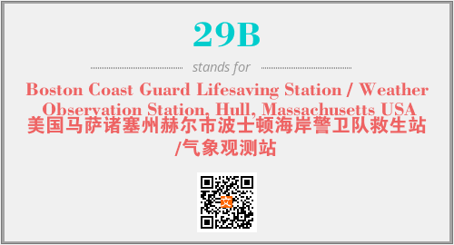 以上为Boston Coast Guard Lifesaving Station / Weather Observation Station, Hull, Massachusetts USA英文缩略词29B的中文解释,以及该英文缩写在英语的流行度、分类和应用领域方面的信息。
