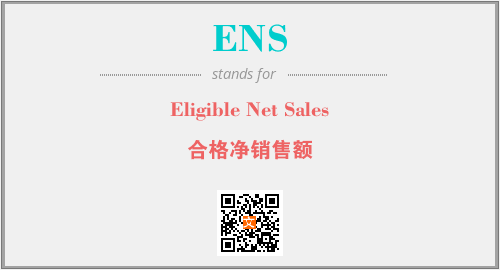 上述内容是“Eligible Net Sales”作为“ENS”的缩写,解释为“合格净销售额”时的信息,以及英文缩略词ENS所代表的英文单词,其对应的中文拼音、详细解释以及在英文中的流行度和相关分类、应用领域及应用示例等。