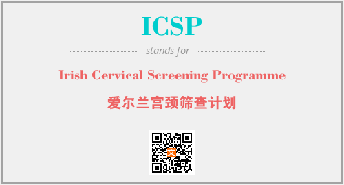 英文缩略词“ICSP”经常作为“Irish Cervical Screening Programme”的英文缩写来使用,中文表示:“爱尔兰宫颈筛查计划”。本文将详细介绍英文缩写词ICSP所代表英文单词,其对应的中文拼音、详细解释以及在英语中的流行度。此外,还有关于缩略词ICSP的分类、应用领域及相关应用示例等。